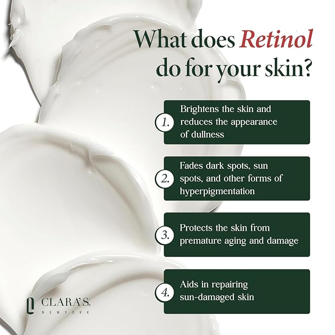 CLARA'S NEW YORK Youth Renewal Retinol (Vitamin A) Facial Cream for Anti-aging, Reducing wrinkles - Rich, Non-sticky, Fast-absorbing Formula, 50ml MADE IN USA