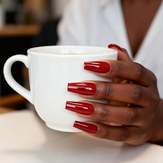 Glossy Red Press on Nails Long Coffin False Nails Faux Ongles Reusable Solid Color Nail Art Tips Salon DIY Manicure Acrylic Fake Nails Gifts for Women Girls