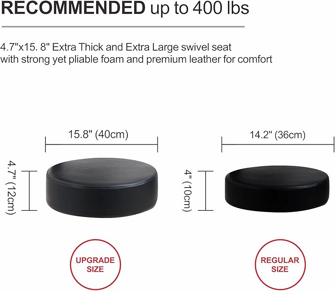 - PREMIUM COMFORT WITH EXTRA LARGE & EXTRA THICK CUSHION: Stool features larger and thicker deluxe cushioning with brand new dense sponge coated with finest soft PVC leather, providing the ultimate comfort to dilight your work