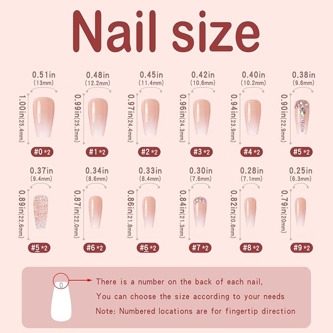 - 🌟press on nail kit: 24pcs/12 sizes of pink press on nails (multiple sizes to fit your nails comfortably), 1 nail file, 1 glue stick, 24 pieces of jelly glue. 1 cleaning cloth, 1 wooden stick. (jelly glue is not as durable as liquid glue, but it allows the long nails to be reused, so please use the appropriate glue for different scenarios.)