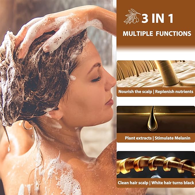 - 3 IN 1 BLACK HAIR DYE: Combined with hair dye color, hair shampoo and hair cnditioner, this hair dye shampoo is different from traditional hair shampoo, as well as ammonia free, no harsh chemicals. More safer to dye youe stylish black hair at home.
