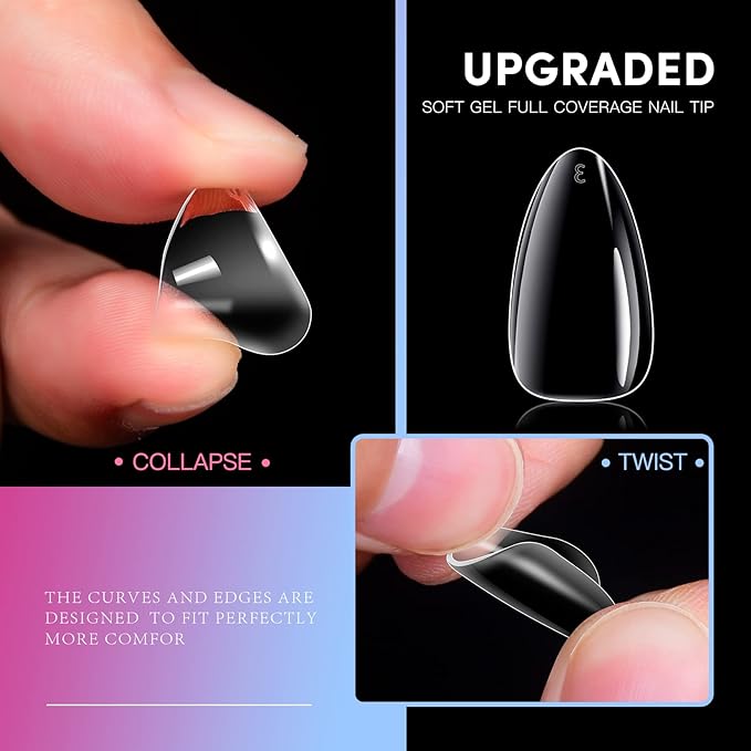 - 【Multiple Applications】: The soft clear almond tips is suitable for nail experts and nail learners of all levels.And it is also suitable for a variety of places such as nail salons DIY nails at home etc.Press on nails almond can also be used as a present for wife girlfriend or nail lovers