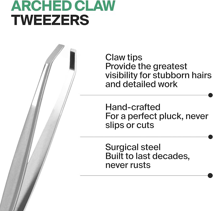 - ARCHED CLAW - Ideal tweezers for gaining leverage in those difficult to reach areas and on coarse hairs. Popular choice for both professionals and home users, great for use with waxing.