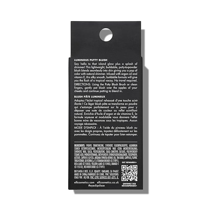 e.l.f. Luminous Putty Blush, Putty-to-Powder, Buildable Blush With A Subtle Shimmer Finish, Highly Pigmented & Creamy, Vegan & Cruelty-Free, Isla Del Sol