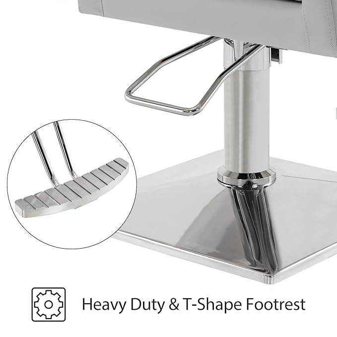 - A Chair Fits Anyone: The seat with the width of 19 inches will perfectly fit most clients. The adjustable seat can be raised from 21.7 inches to 27.7 inches, which is beneficial to satisfy most hair stylists.