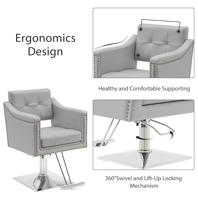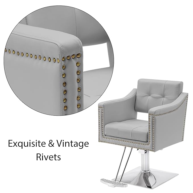 BarberPub Salon Chair for Hair Stylist Hydraulic Barber Styling Chair, Beauty Spa Equipment 8813 (6" Seat Height Adjustment) (Grey)