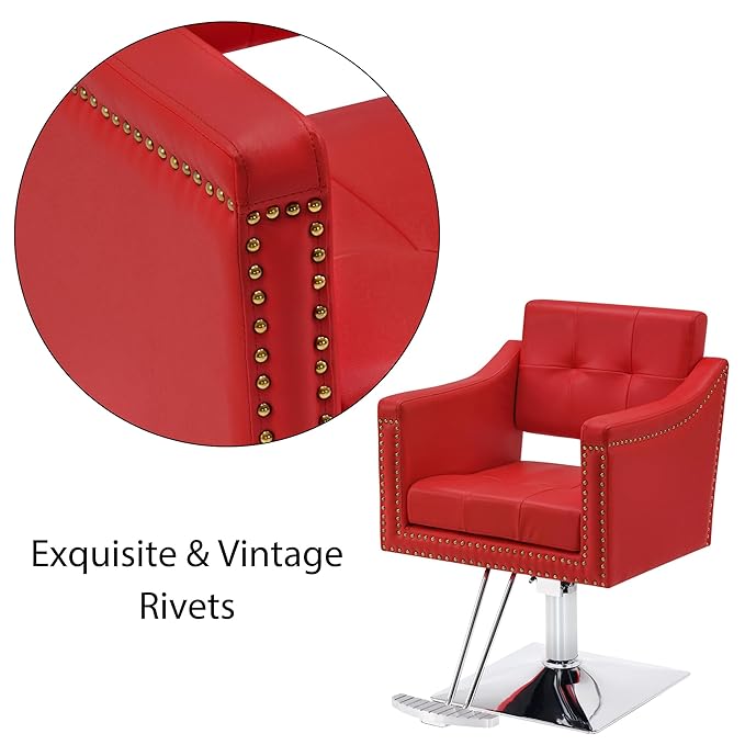 BarberPub Salon Chair for Hair Stylist Hydraulic Barber Styling Chair, Beauty Spa Equipment 8813 (6" Seat Height Adjustment) (Red)