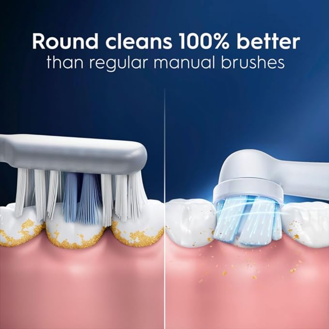 - PROFESSIONALLY INSPIRED DESIGN: Oral-B iO's round toothbrush head is inspired by dental professional tools for a tooth-by-tooth clean, with specially engineered bristles for optimal tooth coverage.