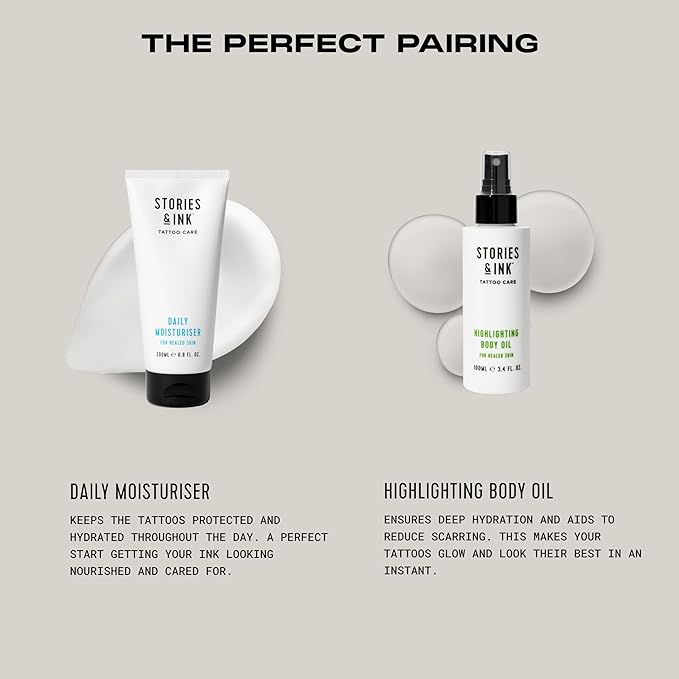 Stories & Ink Tattoo Care | HIGHLIGHTING BODY OIL for healed skin - Refreshes Faded Tattoos for Instant Tattoo Glow, 100 mL / 3.4 Fl Oz