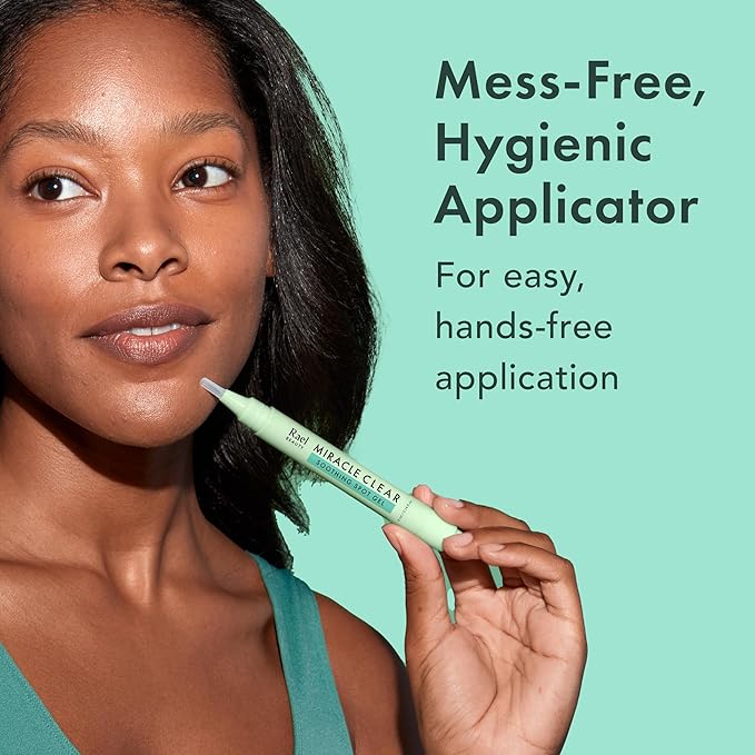 Rael Acne Spot Treatment, Miracle Clear Soothing Spot Gel Pen - Acne Gel, Pimple and Blemish Treatment, Korean Skincare, for Early Stage, Succinic Acid, Tea Tree, Cica, Vegan, Cruelty Free (0.14 oz)