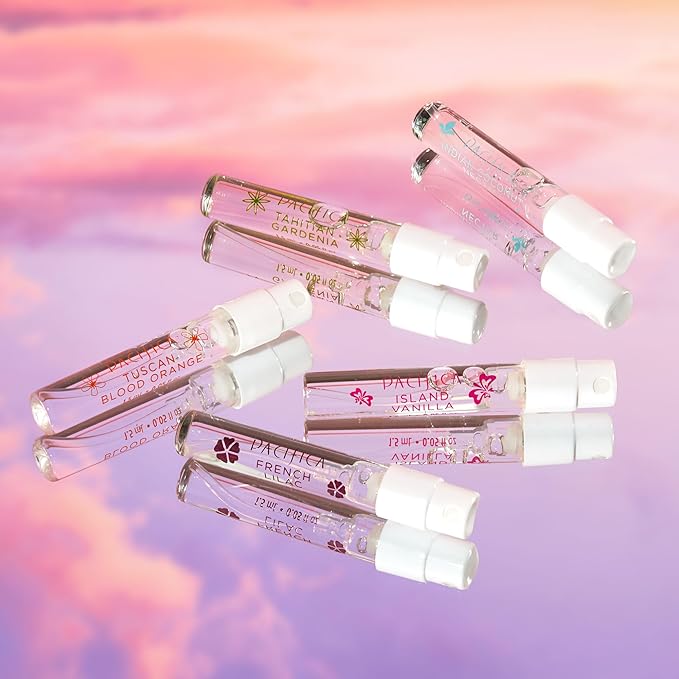 - PACIFICA's BEST SELLING PERFUMES DISCOVERY KIT includes Dream Moon, Flower Moon, Blue Moon, Silver Moon, Neon Moon, Island Vanilla, Tahitian Gardenia, French Lilac, Tuscan Blood Orange, and Indian Coconut Nectar