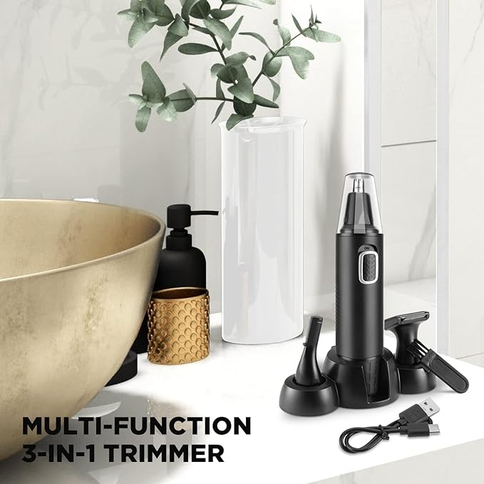 AREYZIN Nose Hair Trimmer 3-in-1 Versatile Rechargeable Ear and Nose Trimmer for Men&Women Painless Electric Shaver Grooming Kit for Ear Beard Facial Pubic Hair Wet Dry Use