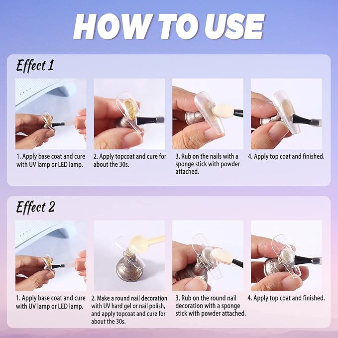 - Wide Application: The shell pearl nail powder is suitable for natural nails, UV gel nails, acrylic nails, poly gel nails, etc. You can make the effects of the mirror, ice transparent, bubble, shell, water ripple, opal, and so on. Perfect for daily use, party, wedding, holiday bash, and nightclubs. The unicorn chrome nail powder is a sparkling shellac nail kit, which is good for nail supplies.