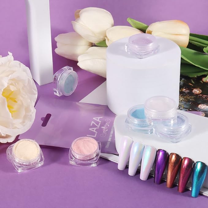 Laza Mermaid Pearl Chrome Nail Powder, 8 Colors Metallic Mirror Effect Pigment, Iridescent Aurora Nail Glitter Dust Kit for Gel Nail Art Decoration, Resin Craft, Gifts - Sweet Candy