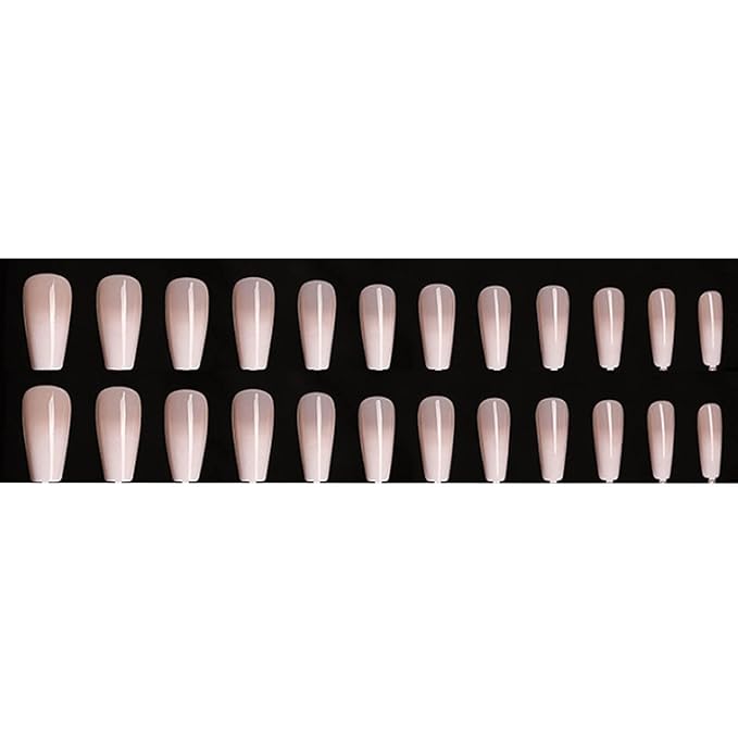 Hkanlre Coffin Press on Nails Medium Fake Nails Coffin Jelly Full Cover Ballerina Ndue False Nails for Women and Girls 24PCS