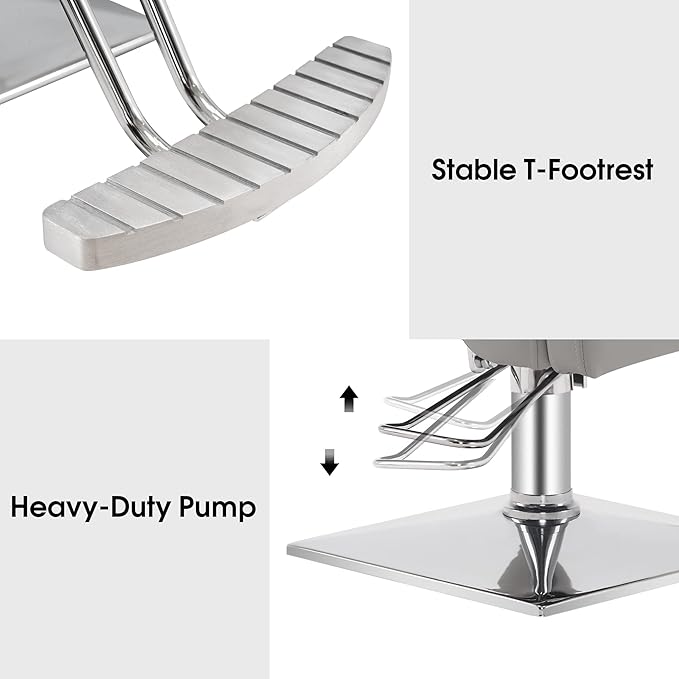 BarberPub Classic Recline Hydraulic Barber Chair Salon Spa Chair Hair Styling Beauty Equipment 3021 (Grey)