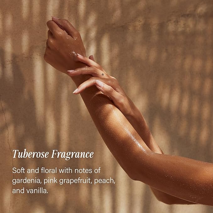 - Tuberose Scent: Our scented body oil features a soft, floral scent with notes of gardenia, pink grapefruit, peach, and vanilla
