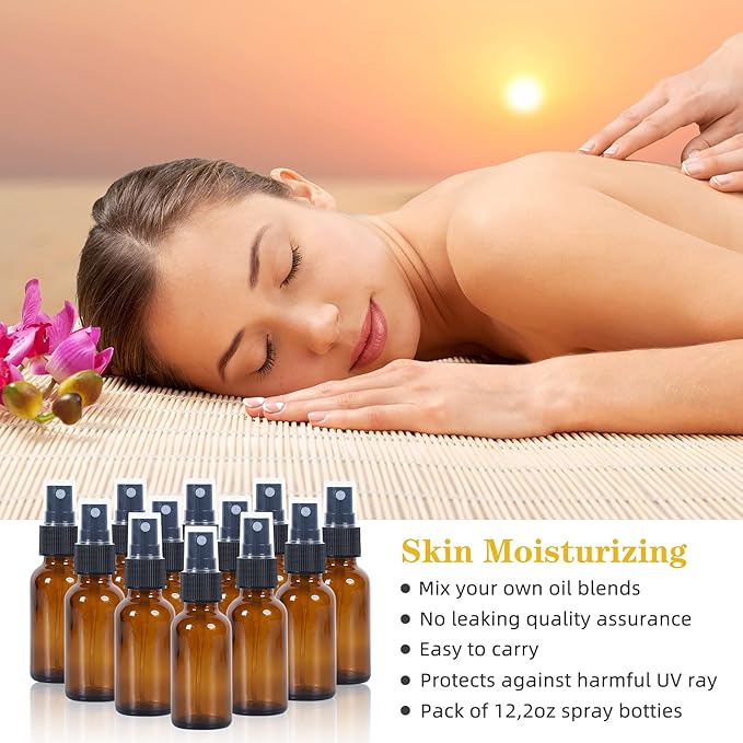 - Value Sprays Set: 12 pack 2oz (60ml) amber glass sprays bottles. Bottles are packaged in grid-shaped partition and thick carton boxes to prevent damage to transport