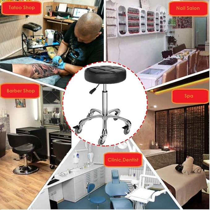 - Stool Chair with Quiet Smooth Gliding & Braking System: Heavy duty rubber casters are safe for hardwood floor,tile and carpet, scratch-free and noiseless. The high-quality soft polyurethane wheels slide smoothly, silently, and stably. A set of 5 wheels, including 2 with brake that allows you to make the rolling stool to be fixed