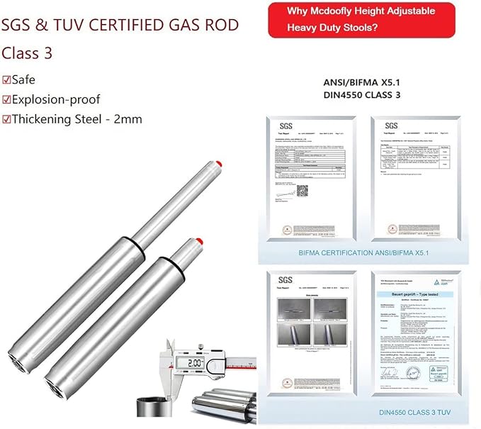 - Very Sturdy and Well Made Stool: Compared to ordinary stools on the market, our rolling stool adopts premium PU leather, brand new high-density sponge, even the bottom of seat cushion is fully covered with leather. SGS and TUV certified gas lift cylinder, nice aluminum base with popular roller-blade style casters. Weight capacity is 400 lb. That’s why ours is a little expensive than others, but quality is much better