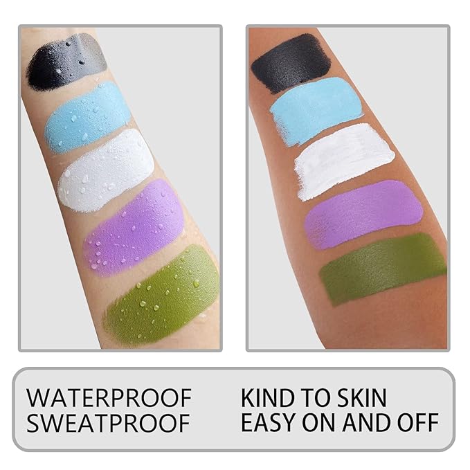 - ✔Stays Well And Last Long---Our face painting is easy to apply with vibrant color and stay well in the place all day with minimal smudging,gives a nice color to complete the look.Doesn’t clog pores or break out your skin