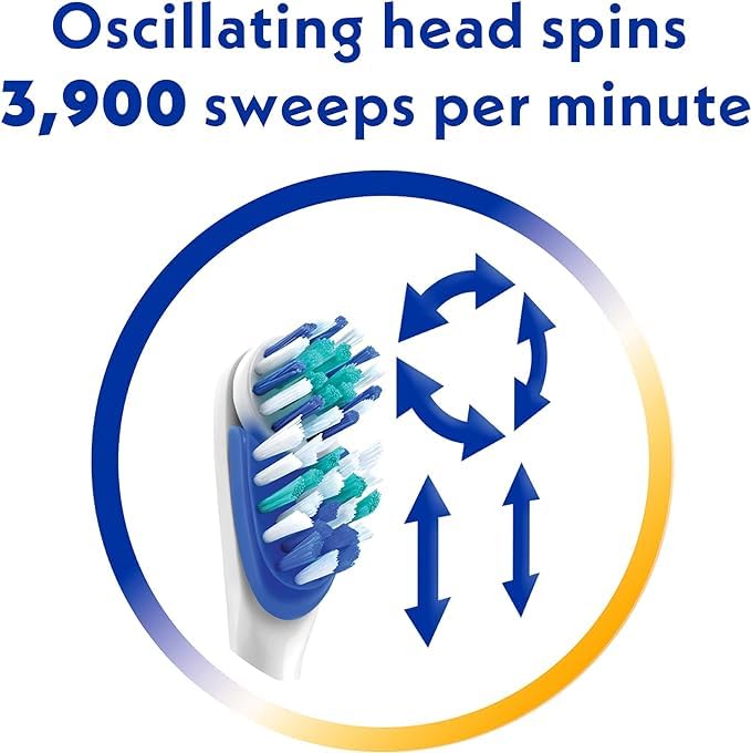 - DUAL ACTION BRUSH HEAD features oscillating circle (spinner) and sliding plate (scrubber), moving up to 3,900 sweeps per minute!