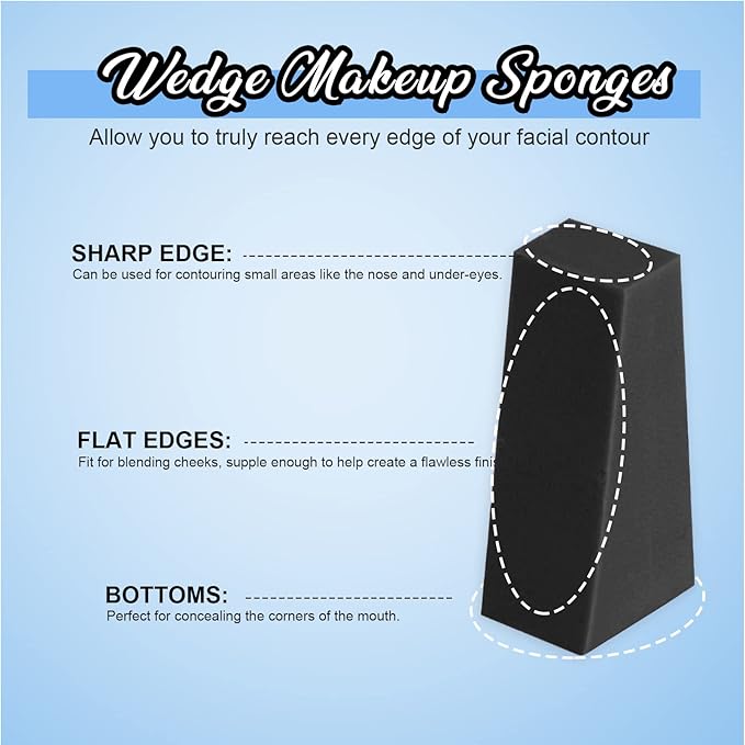 - Cosmetic Wedges Sponges: Professionally wedge shaped makeup sponge can hug every curve of your face, like the under the eyes, nose, mouth, meet all needs to makeup for full face. ATTENTION! These are small size makeup sponge wedges, please read the size detail carefully before place order.