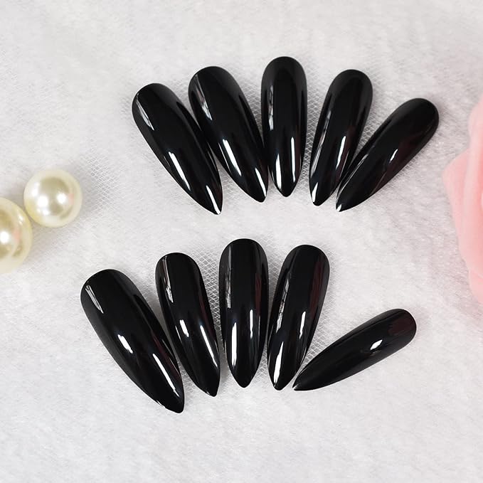 - 1. About the nails-Super Long Stiletto Point Press on Nails,Classic Black Wearable Fake Nail Tips for Halloween,Party,Daily,make you more charming.