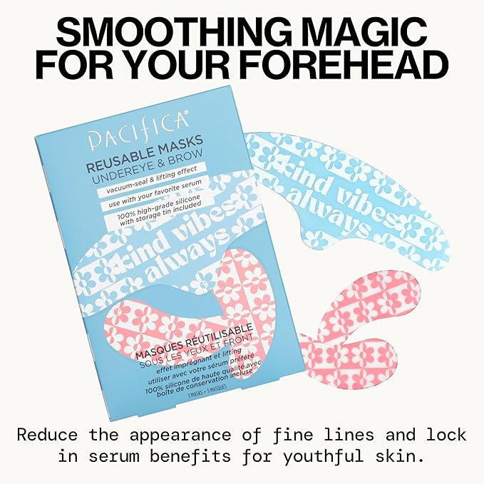 - 2-IN-1 FOREHEAD & EYE WRINKLE TREATMENT – Get a complete anti-aging solution with this value set featuring Pacifica’s reusable brow mask and undereye masks together. Tackle forehead frown lines and under-eye puffiness or dark circles at the same time for a top-to-bottom eye area refresh. This kit smooths the appearance of expression lines on your forehead while also brightening and depuffing your delicate under-eye skin – all in one convenient set.