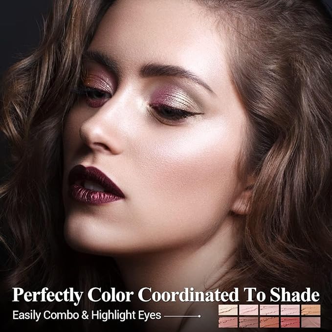 10PCS Eyeshadow Stick,Shimmer And Neutral Champagne Pink Metallic Eye Shadow sticks,Cream Eyeshadow Pencil Crayon with Smudge-proof & Waterproof,Eye Brightener Stick