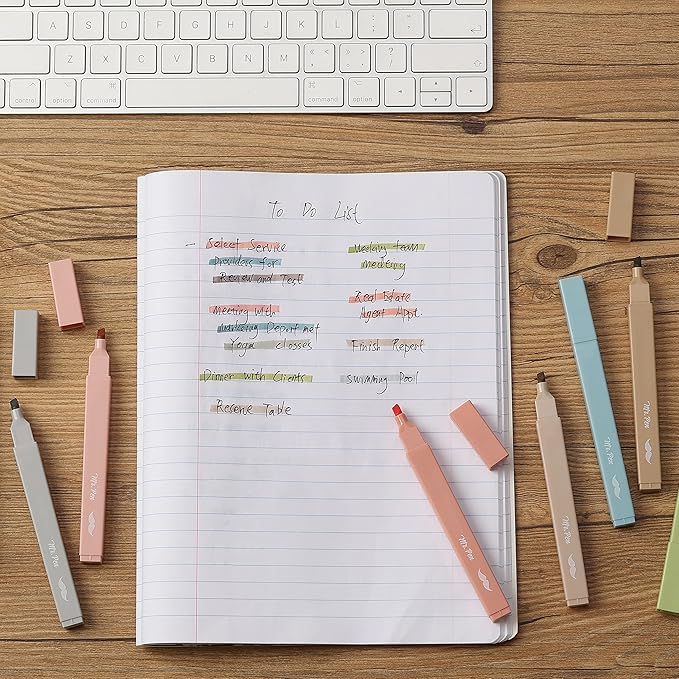 - Make your notes and papers pop with our soft and gentle highlighters! This package includes 8 highlighters in non-neon, assorted colors. Our highlighters are perfect for making your work and school life a little bit brighter.