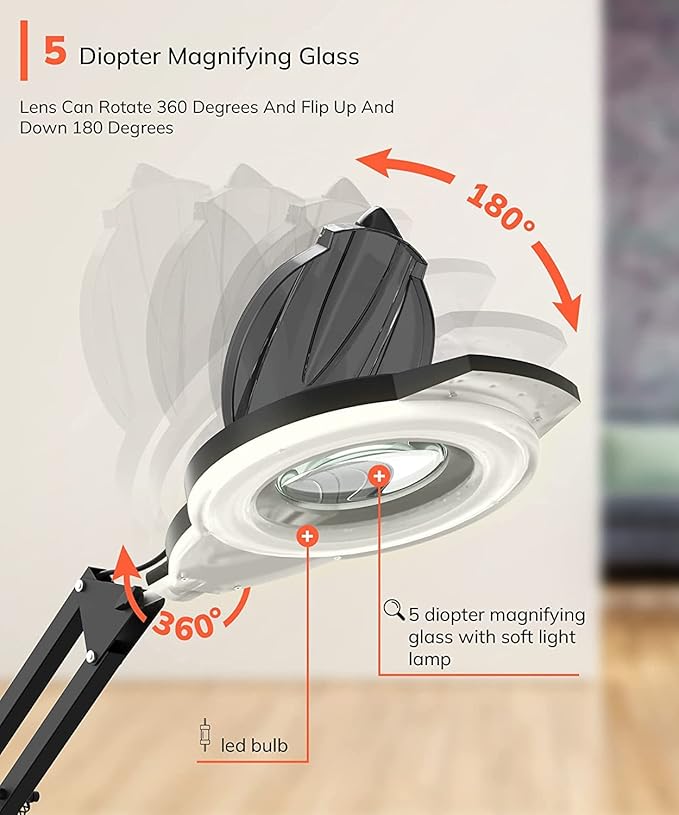 - Professional 5X Magnifying Lamp: The LED light skin beauty tool with 5 times the magnifying lens, high quality and bright facial steamers magnifying glass helps you see details more clearly, and the brightness can be adjusted by the knob for ideal lighting.
