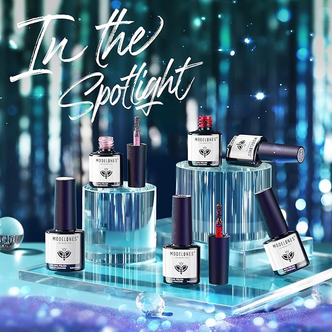 - USER-FRIENDLY: Modelones Sparkle nail polish is made of natural resin, non-toxic formula. The sparkle gel nail polish is low odor, rich color, middle consistency, self-evenly, no shrink and edge, and this glitter gel polish will be a perfect choice for nail art lovers to enjoy DIY manicure.
