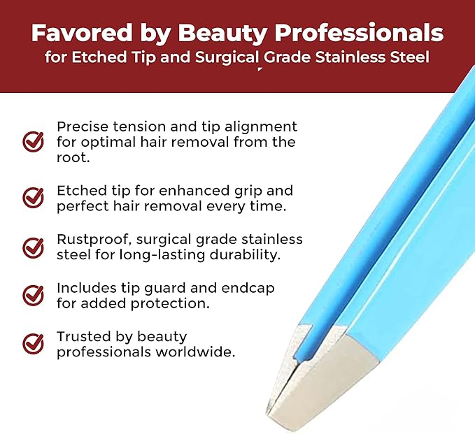 - PRECISION TENSION AND TIP ALIGNMENT: The interior of the tip is etched to easily grip and pull the hair from the root every time, and is favored by beauty professionals worldwide. For the best results, always use tweezers on clean skin without any lotions, oils, or makeup.