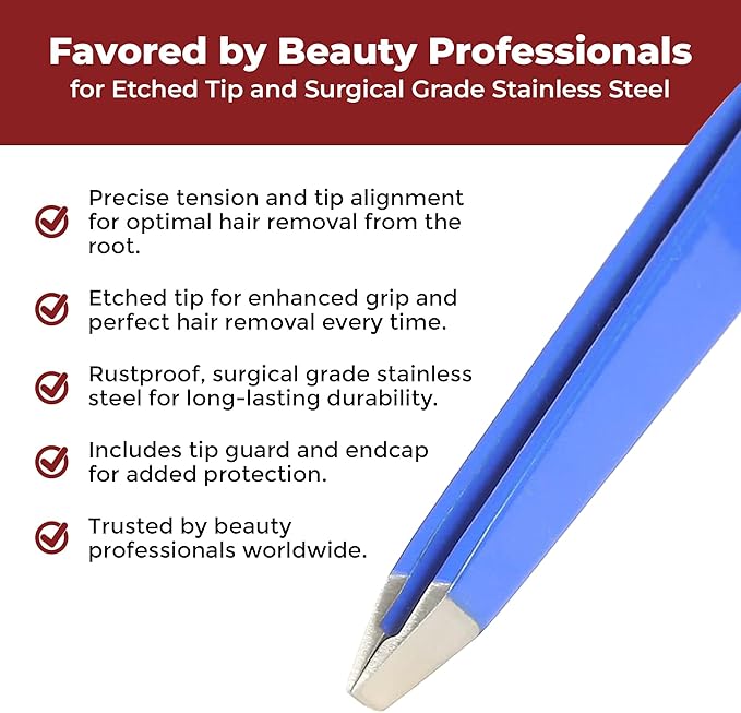 - PRECISION TENSION AND TIP ALIGNMENT: The interior of the tip is etched to easily grip and pull the hair from the root every time, and is favored by beauty professionals worldwide. For the best results, always use tweezers on clean skin without any lotions, oils, or makeup.
