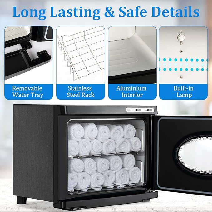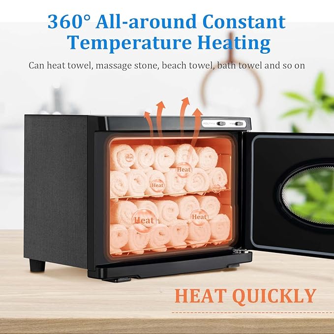 - 【2 in 1 Hot Towel Warmer】Heating and lighting design, this hot towel warmer can not only heat towels but also can be used in bath towels, hot packs, neck warmers, massage stones and other grooming tools. Ideal for bathroom, spa, beauty, massage, salon, gym, hotel and home use.