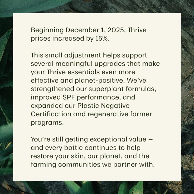 - Leave Skin — and the Planet — Better: Every purchase helps support the rural farmers who produced our super plants through regenerative farming. If you don't love your Thrive, let us know and we will take care of you.