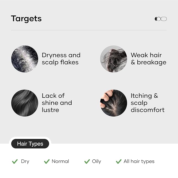 - Product Benefits : Strengthens hair follicles and reduces hair thinning, Promotes healthy hair growth and enhances hair volume, Deeply nourishes and hydrates the scalp, Helps minimise dandruff and scalp irritation, Improves hair texture, leaving it soft, shiny, and manageable, Provides protection against environmental damage Strengthens hair follicles and reduces hair thinning, Promotes healthy hair growth and enhances hair volume, Deeply nourishes and hydrates the scalp, Helps minimise dandruff and scalp irritation, Improves hair texture, leaving… See more