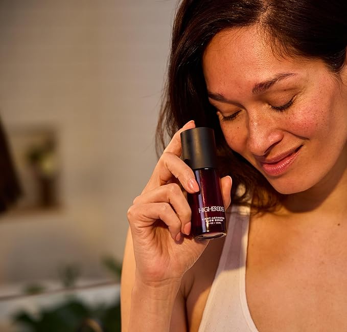 HigherDOSE Light-Activated GLOW SERUM - Anti Aging Face Serum to Plump, Hydrate & Smooth Fine Lines - Made with Vitamin C, Copper Peptides & Hyaluronic Acid - Boosts Benefits of Red Light (1 oz)