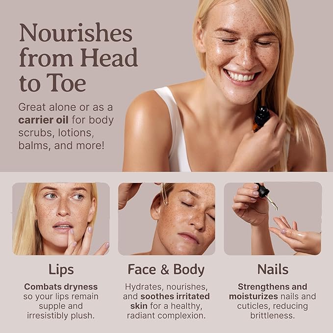 - Special Feature : 100% Money Back Guarantee. Bottled in the USA. Veteran-owned business., 100% Pure. Organic. Unrefined. Cold-pressed. Cruelty-free. Natural., Free from: parabens, hexanes, additives, preservatives., Minimizes Wrinkles. Leaves Skin Smooth and Soft. Prevents Stretch Marks. Promotes Skin Elasticity., Registered Organic with the State of California Dept of Public Health Food & Drug Branch. Reg# 112841. 100% Money Back Guarantee. Bottled in the USA. Veteran-owned business., 100% Pure. Organic. Unrefined. Cold-pressed. Cruelty-free. Natural., Free from: parabens, hexanes, additives, preservati… See more
