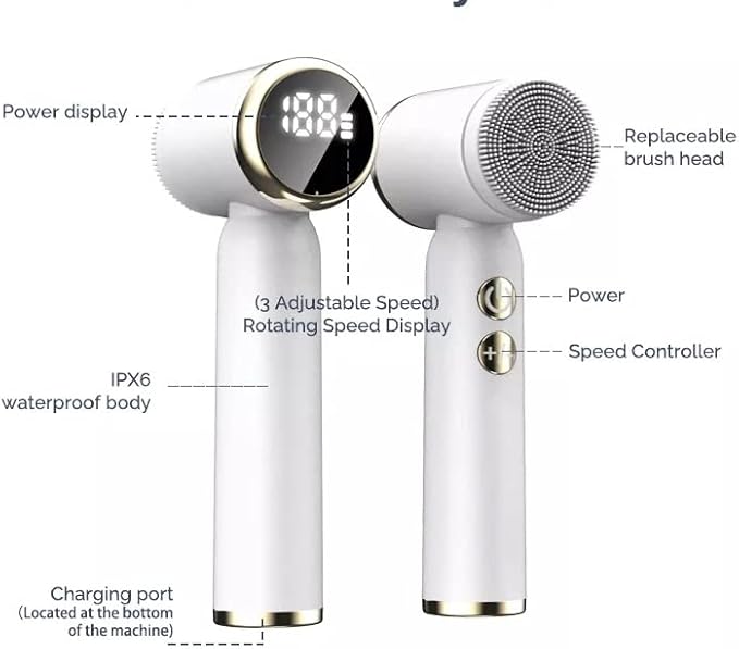 OLAZARAH | Facial Cleansing Exfoliating Face Wash Brush, Rechargeable Waterproof LCD Display Screen by OlaZarah