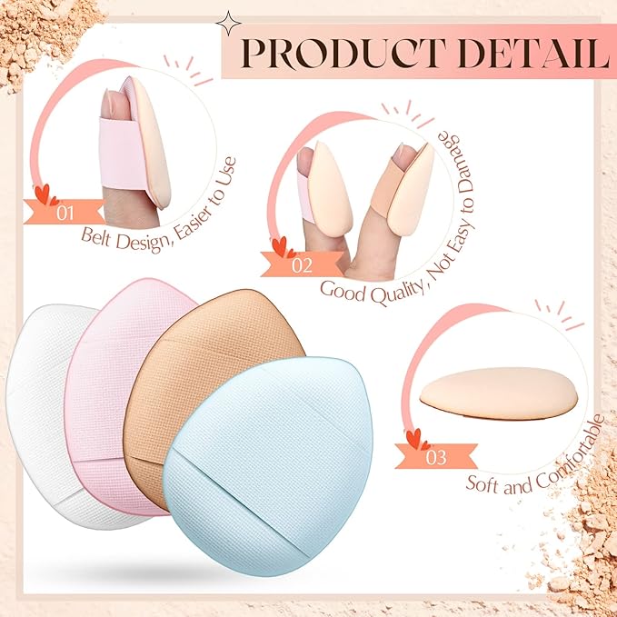 - Mini Size to Apply: the size of each foundation sponge is about 1.46 x 1.18 inches/ 3.7 x 3 cm, it can fit your finger size well, and is easy to cover areas that need concealer, suitable for detailed parts of your face, such as under eye, nose side, eyelid and so on