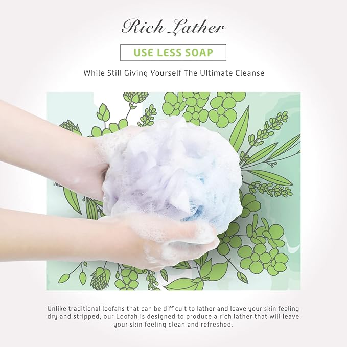 - RICH LATHER - Create a rich, foamy lather when used with your favorite soap or body wash. This loofah helps to whip up a thick and luxurious lather like never experienced before.