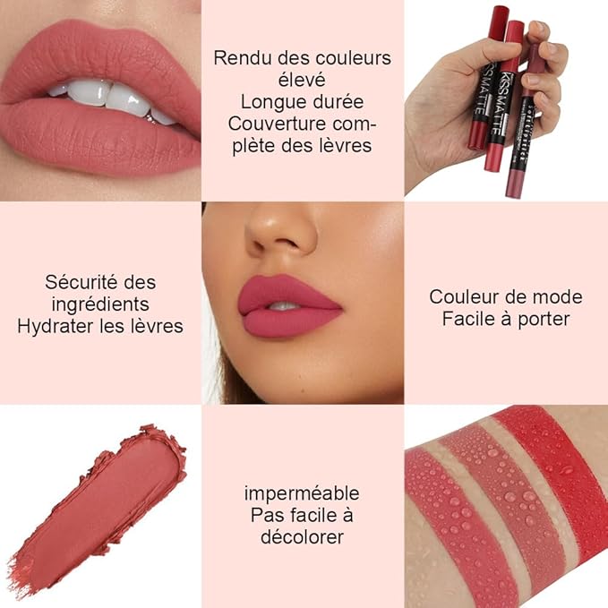 - ❤【3Pcs Silky Velvet Matte Crayon Lipstick Set】It is Velvet Matte lipstick set.Silky like chocolate,Lightweight texture, and intense hydration offer a zero-gravity silky feel.