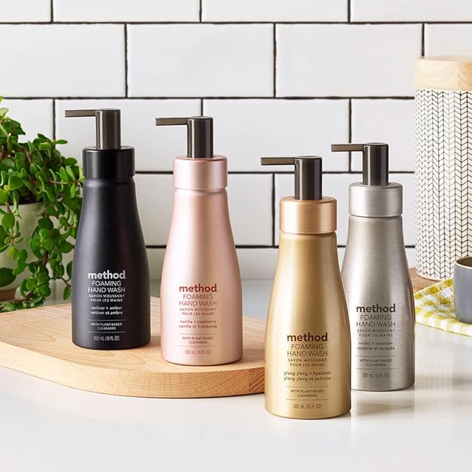 Method Premium Foaming Hand Wash, Vanilla + Raspberry, Reusable Pink Aluminum Bottle, Biodegradable Formula, 10 fl oz (Pack of 3)