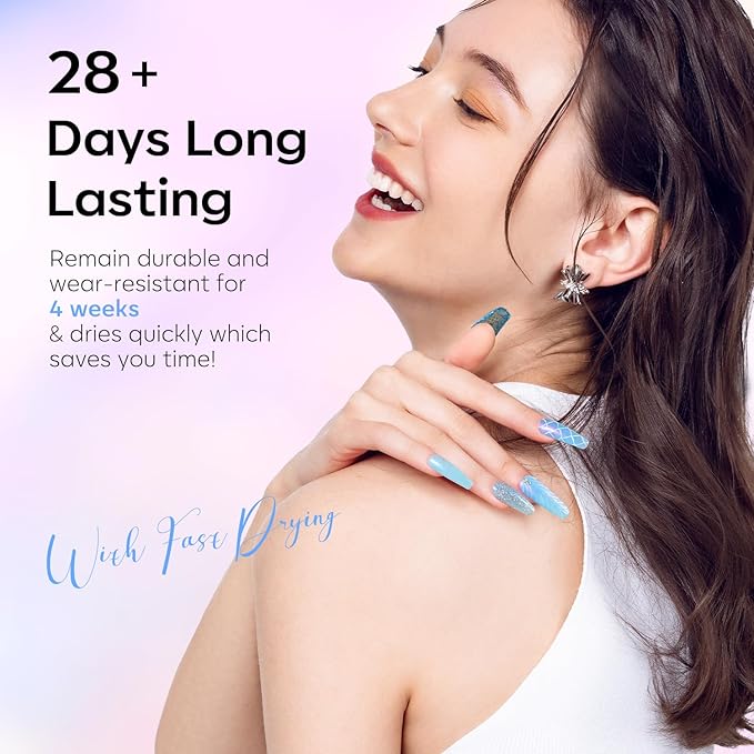 - 28 Days No Peel-off & Bubble free: Modelones glitter gel nail polish owns anti-chipping, great coverage, superb pigmented & smoothness, full but natural-looking. With a proper application, this high quality glam and chameleon nail polish gel kit can last for about 28+ days. NOTE: Need Base Coat & Top Coat, required to be cured under the nail lamp!