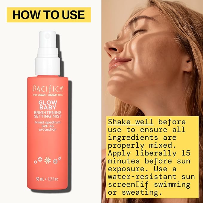 Pacifica Setting Spray Glow Baby Brightening Mist, Broad Spectrum SPF 45, UVA/UVB Protection, Blue Light Protection, Facial Mist, Suncare, Skin Care, Vegan, 1.7 fl oz (1 Count)