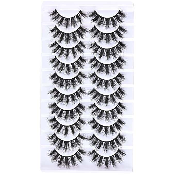 FARRED Fluffy Lashes Natural Eyelashes Short Wispy Eye Lash Strips 10 Pairs Separated Volume Eyelash Pack 16mm Dramatic Wispies Fake Strip Lashes Clusters Cat Eye Pestañas Spiky Look