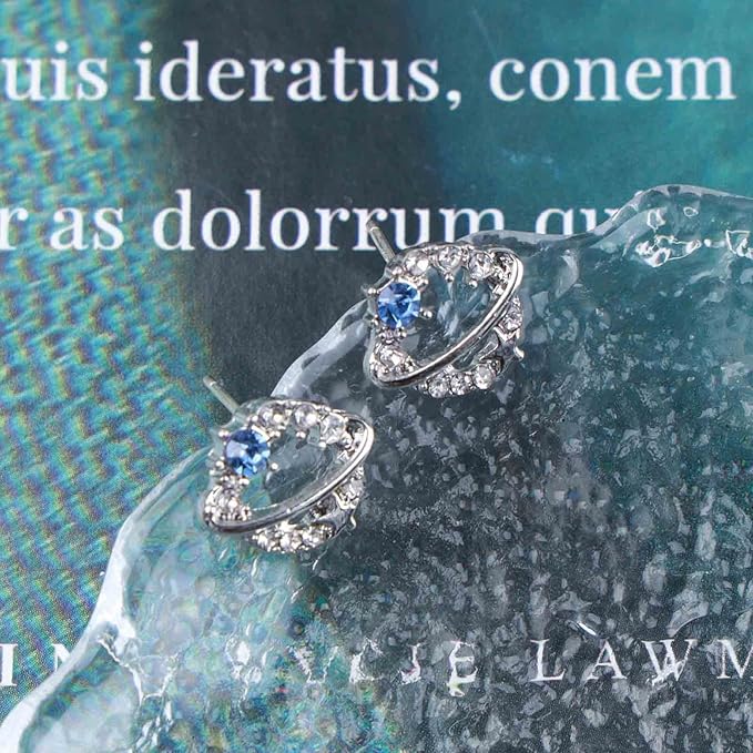 Boho Crystal Saturn Earrings Cz Orb Planet Earrings Silver Rhinestone Circle Earrings Tiny Sapphire Stud Earrings Jewelry for Women and Girls