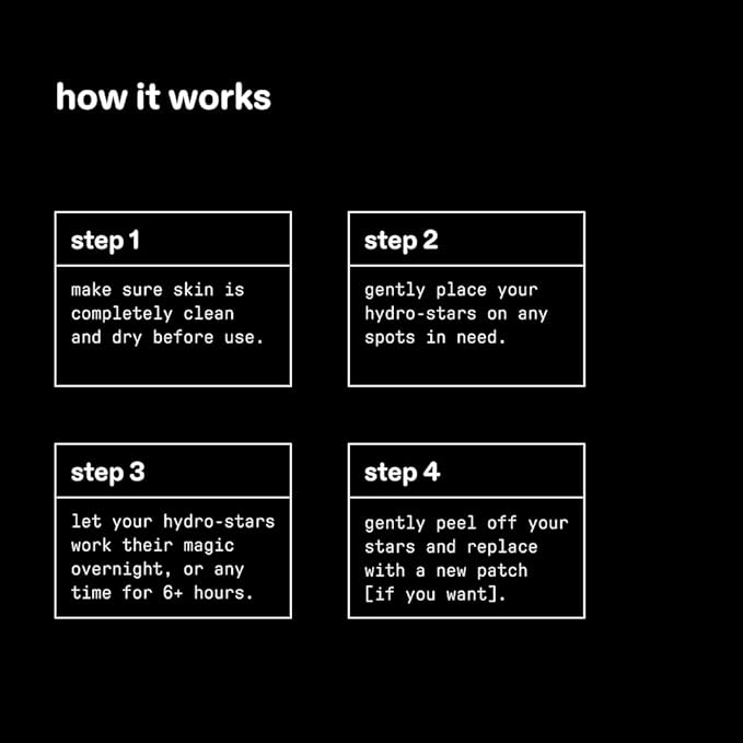 - EASY TO USE: Always apply to clean, dry skin (after cleansing and before moisturizing). Replace with a new star in the morning, or after 6+ hours.